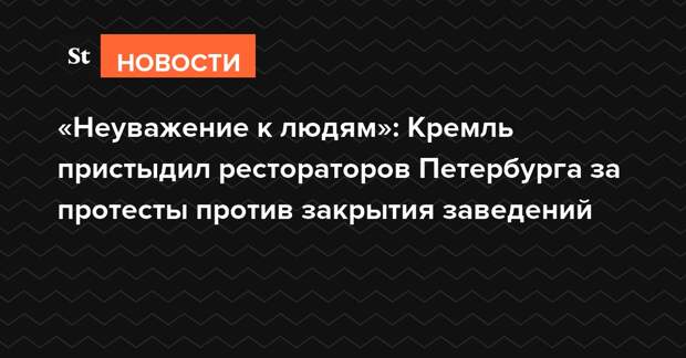 Официальный представитель Кремля Дмитрий Песков заявил, что отказ баров и ресторанов Петербурга от соблюдения ограничений, введенных властями на новогодние праздники — это неуважение к людям.