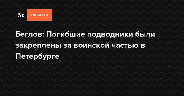 Ранее СМИ сообщили, что моряки служили в войсковой части 45707, расположенной в пригороде Санкт-Петербурга — Петергофе, информация о части находится под грифом «совершенно секретно».«Приношу глубокие соболезнования семьям погибших подводников в Баренцевом море. Команда была закреплена за нашей воинской частью и в последнее плаванье отправилась из Петербурга. Память о наших героях всегда будет с нами», — цитирует Беглова «Интерфакс».