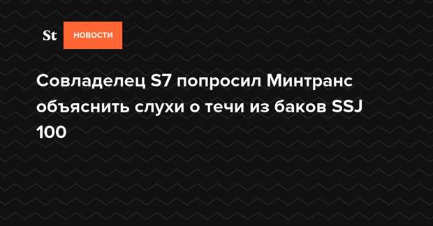 Совладелец группы S7, глава подкомиссии по авиационной и космической деятельности РСПП Владислав Филев во время заседания подкомиссии попросил заместителя главы Минтранса Александра Юрчика прокомментировать слухи о течи из баков самолета Sukhoi Superjet 100 (SSJ 100) в Якутске.