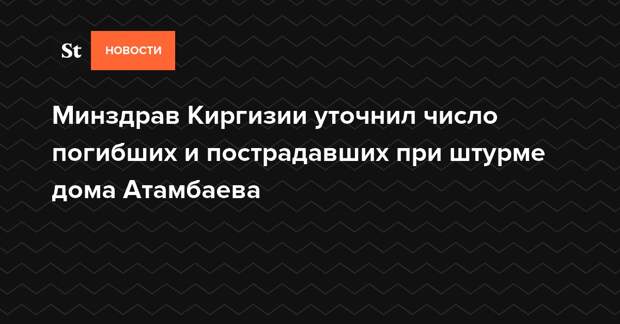 Во время попытки штурма дома бывшего президента Киргизии Алмазбека Атамбаева вечером 7 августа погиб один сотрудник спецназа, сообщает 24.kg со ссылкой на данные Минздрава республики. Пострадали 52 человека, из которых четверо получили пулевые ранения, 25 — черепно-мозговые травмы.