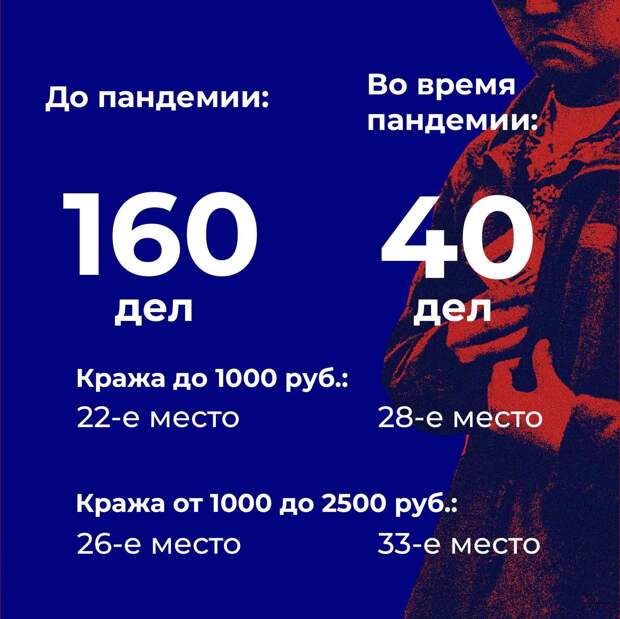 Похожим образом сократилось и число дел о мелких хищениях из магазинов.