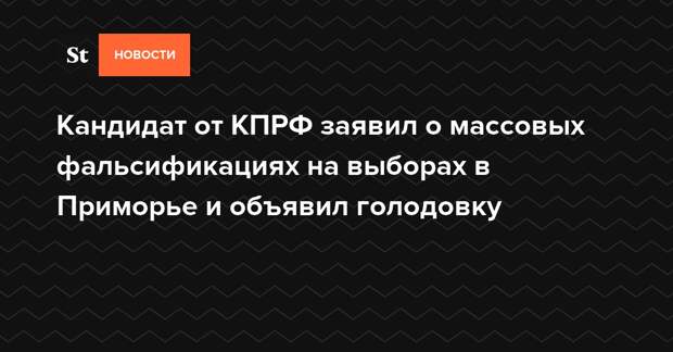 «Этой ночью были переписаны итоговые протоколы в городах Артем, Находка, Уссурийск и во Владивостоке в Советском районе. У моих членов комиссии с правом совещательного голоса имеются на руках все копии протоколов с синими печатями и сейчас мои юристы готовят исковое обращение в суд на опротестование итогов голосования именно по этим четырем территориям. В связи с этим я объявил бессрочную голодовку», — цитирует кандидата от КПРФ «Интерфакс».