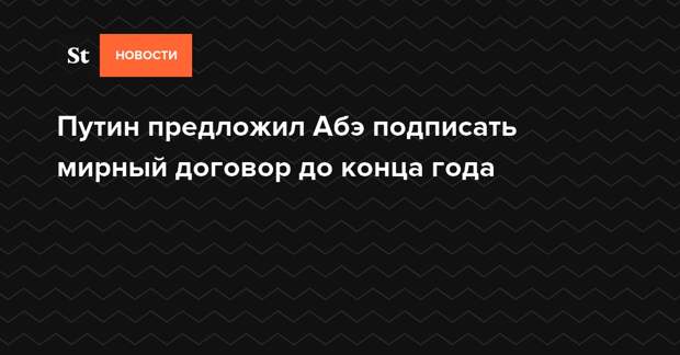 Президент России Владимир Путин предложил премьер-министру Японии Синдзо Абэ заключить мирный договор между странами до конца этого года.