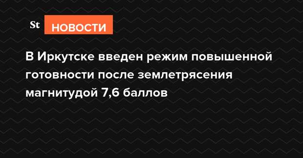 Власти Иркутска объявили режим повышенной готовности после землетрясения в Бурятии. Мощность толчков оценили в 7,6 баллов в эпицентре, сообщили в МЧС. Толчки ощущались в Бурятии и Иркутской области, по предварительным данным, жертв и разрушений не последовало.
