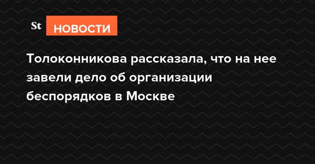 К родителям участницы группы Pussy Riot Надежды Толоконниковой пришли полицейские и сообщили, что на нее завели уголовное дело об организации массовых беспорядков 27 июля 2019 года в Москве. Об этом Толоконникова написала в Twitter.