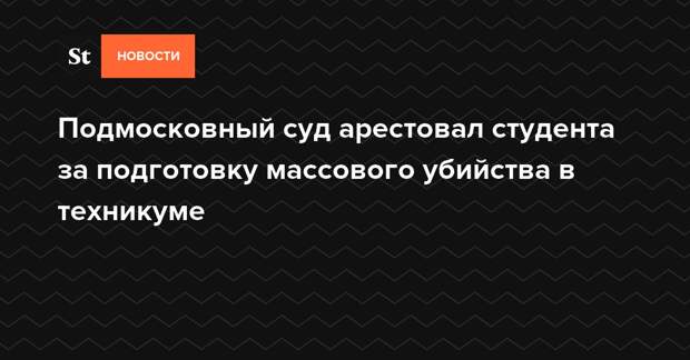 Зарайский городской суд Подмосковья арестовал студента Ивана Колпакова (имя и фамилия изменены) по подозрению в подготовке массового убийства, сообщили в пресс-службе Мособлсуда. По версии следствия, юноша собирался расстрелять однокурсников из купленного им пистолета.