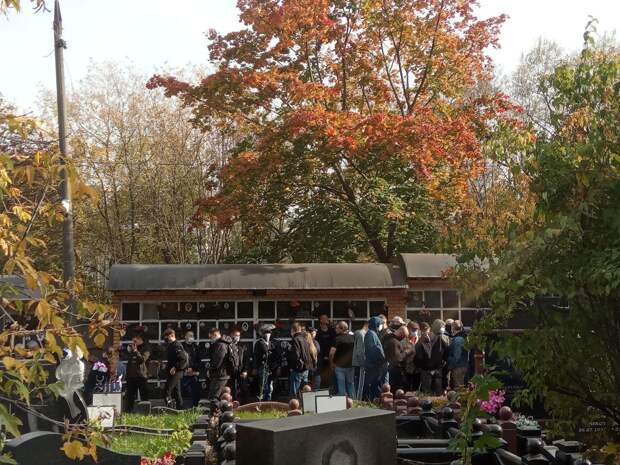 Чуть поодаль от места Марцинкевича на кладбище парень обнимает девушку. Та беззвучно рыдает и не может остановиться. Рядом парень увидел своих знакомых и опасливо кинул им зигу, потом понял, что не стоит в таких местах так делать и отвернулся. Многие оставались подождать, пока тело Марцинкевича предадут земле.