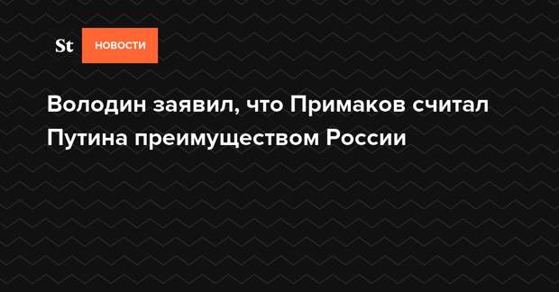 Председатель Госдумы Вячеслав Володин заявил, что бывший премьер-министр России Евгений Примаков видел в президенте РФ Владимире Путине спасение и развитие страны. По словам Володина, экс-премьер всегда подчеркивал, что преимущество России — это не ее геополитическое положение, не нефть и не газ, а Путин.