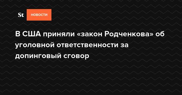 Палата представителей Конгресса США 22 октября приняла «закон Родченкова», предусматривающий уголовную ответственность за допинговый сговор. Об этом сообщает издание Ассошиэйтед Пресс.