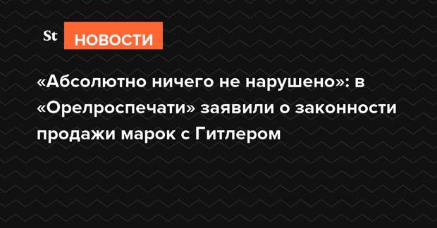 Следственный комитет России начал проверку по факту продажи в газетных киосках Орла почтовых марок с изображением лидера Третьего рейха Адольфа Гитлера. Сейчас реализацию товара прекратили. Представитель «Орелроспечати» утверждает, что продажа марок с портретом фюрера была законна, «абсолютно ничего не нарушено».