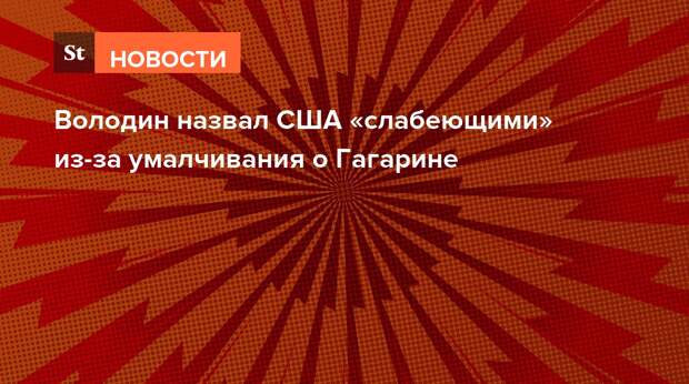 Председатель Госдумы Вячеслав Володин назвал США «слабеющими» из-за ситуации с первым космонавтом Юрием Гагариным. Сильные страны признают успехи конкурентов, а слабые стараются их не замечать, пояснил Володин.