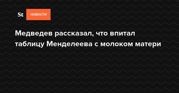 Премьер-министр России Дмитрий Медведев при посещении Санкт-Петербургского государственного технологического института (СПБГТИ) 28 ноября заявил, что вместе «с молоком матери» впитал информацию о существовании Периодической системы химических элементов — знаменитой таблицы Менделеева.