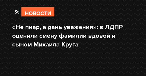 Депутат Госдумы от ЛДПР Ярослав Нилов рассказал, что также общался с Кругом и считает, что смена фамилии его второй женой и сыном — не пиар-акция, а дань уважения родному человеку.Ранее Александр, которому исполнилось 18 лет, рассказал, что раньше в его документах значилась, как и у отца, фамилия Воробьев. Однако с ноября 2020 года он – Александр Круг.