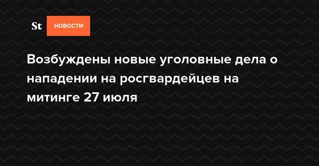 В Москве после несанкционированного митинга 27 июля возбуждено несколько новых уголовных дел о нападении на сотрудников Росгвардии. Потерпевшими признаны пять силовиков, двое из них пострадали от слезоточивого газа, еще одному участник митинга бросил в голову камень, рассказал источник Daily Storm в правоохранительных органах.