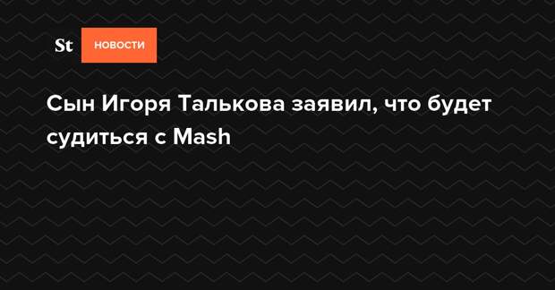 Игорь Тальков, сын убитого в 1991 году знаменитого певца, заявил, что будет судить с руководством Telegram-канала Mash, который опубликовал сообщение о задержании его за рулем в нетрезвом состоянии.