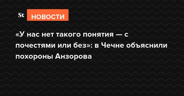 «У нас нет такого понятия — с почестями или без почестей. У нас всех хоронят одинаково вне зависимости от ранга или от того, как человек умер. Поэтому то, что я вижу на видео, — это обычные похороны. Всегда большое количество людей, всегда по одним канонам хоронят», — сказал телеканалу «360» Тапаев, комментируя выложенный в соцсетях видеоролик прощания с Анзоровым в чеченском селе Шалажи.