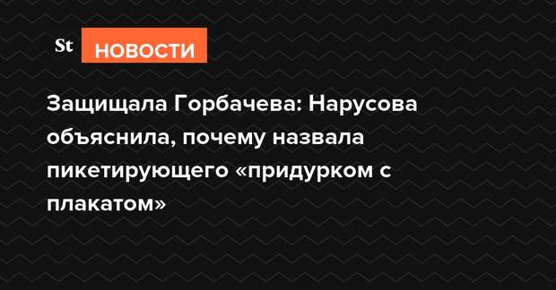 Сенатор позднее отметила, что запрещать эту форму протеста не собирается, но резко высказалась о пикетирующих, поскольку в день рождения первого президента СССР Михаила Горбачева у Совфеда стоял «придурок с плакатом».Заметка дополняется