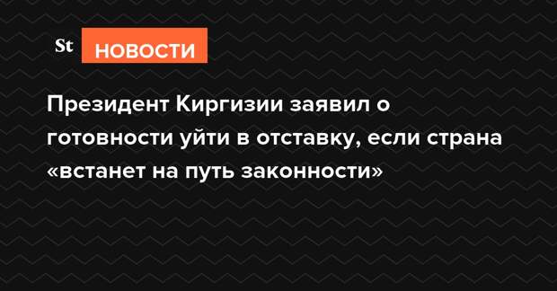 Президент Киргизии Сооронбай Жээнбеков выразил готовность уйти с поста «после того, как будут утверждены легитимные руководители органов исполнительной власти и страна встанет на путь законности».
