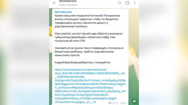 В сообщении содержался призыв к властям Подмосковья, администрации Богородского округа (на его территории находится Ногинск) и телеканалу «360» разобраться с порядками на кладбище.