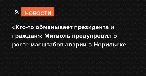 Гринпис опубликовал снимки из космоса, на которых запечатлено, что нефтепродукты, разлившиеся в результате аварии на территории, принадлежащей «Норильский никель», достигли озера Пясино. Экс-замруководителя Росприроднадзора, глава движения «Зеленая альтернатива» Олег Митволь заявил Daily Storm, что судя по снимкам, «кто-то обманывает президента и граждан» о масштабах аварии.
