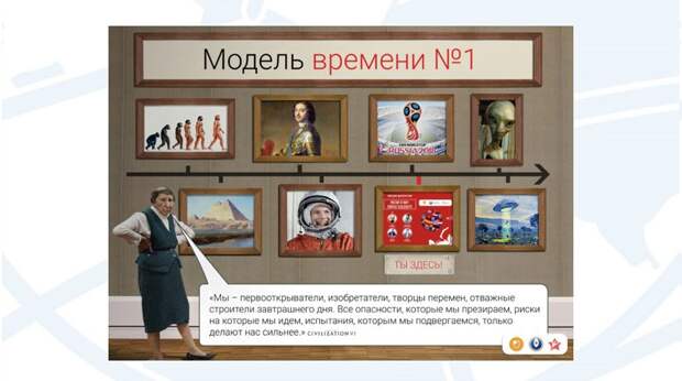 Не получив компетентных ответов от организаторов, Daily Storm ознакомился с заявленными темами лекций-дискуссий. Первый слайд презентации содержит в себе цитату: «Мы первооткрыватели, изобретатели, творцы перемен, отважные строители завтрашнего дня. Все опасности, которые мы презираем, риски, на которые мы идем, только делают нас сильнее». Она подается из уст музейного смотрителя, но по факту принадлежит создателем популярной компьютерной стратегии Civilization 6.