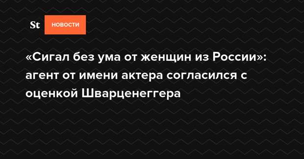 Экс-губернатор Калифорнии, исполнитель роли Терминатора в одноименных боевиках, признался в любви к российским женщинам на Synergy Global Forum в Петербурге.«Стивен Сигал полностью поддерживает Арнольда Шварценеггера в том, что в России живут самые красивые женщины в мире. В то же время он к женщинам из разных стран относится приблизительно одинаково ровно: первая жена у него была японка, вторая — американка, третя – немка, а четвертая — монголка. Вместе с тем женщин со славянской внешностью он считает очень красивыми», — сообщил Рейбанд.