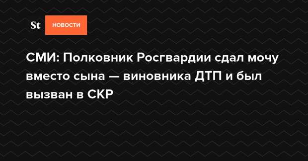 СМИ: Полковник Росгвардии сдал мочу вместо сына — виновника ДТП и был вызван в СКР