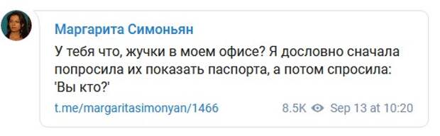 Маргарита Симоньян заявила, что вечер 13 сентября она провела в обществе «отравителей Скрипалей»