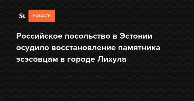 Посольство России в Эстонии прокомментировало инициативу спикера эстонского парламента Хенна Пыллуааса восстановить памятник солдатам 20-й эстонской дивизии СС в городе Лихула. В заявлении, опубликованном в паблике российского посольства в Facebook, решительно осуждаются подобные провокации.