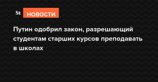 Президент России Владимир Путин одобрил законопроект, разрешающий студентам старших курсов преподавать в школах и вести детские кружки и факультативы. Обучающиеся по педагогическим специальностям студенты смогут вести уроки, начиная с четвертого курса.