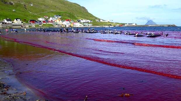 Однако есть государства, где осуществляется промышленный убой китообразных. Например, на Фарерских островах (датская автономия) ежегодно убивают около тысячи дельфинов-гринд. Животных, тысячелетиями мигрирующих у живописных скалистых островов, с помощью лодок загоняют в небольшую бухту, где жестоко забивают их всем, что попадется под руку. Прибрежные воды окрашиваются красным после такой «охоты».