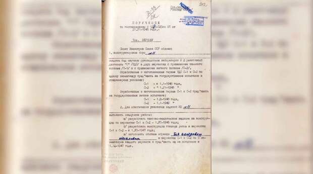 Госкорпорация «Росатом» опубликовала ранее засекреченные документы, связанные с появлением в СССР первой ядерной бомбы. Создание «реактивного двигателя С» (под ним зашифровали атомную бомбу) было дано конструкторскому бюро №11 (КБ-11) в июне 1946 года.