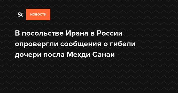 Информация о гибели Арефех Санаи, дочери посла Ирана в России Мехди Санаи, не соответствует действительности. Об этом заявили Daily Storm в посольстве исламской республики в Москве.