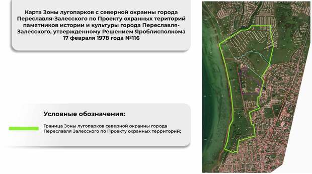 Согласно новому генеральному плану Переславского района, часть земель, находящихся в категории сельскохозяйственных, станут землями поселений. Это означает, что там будет разрешено строительство домов, дач, отелей, что может навредить природе. Кроме того, местные жители заявляли о многочисленных нарушениях при принятии нового генплана: экономические расчеты старые, некоторые данные не соответствуют действительности, а зона лугопарков (особо охраняемая природная территория) и ландшафт вблизи национального парка будут утрачены в случае строительства.