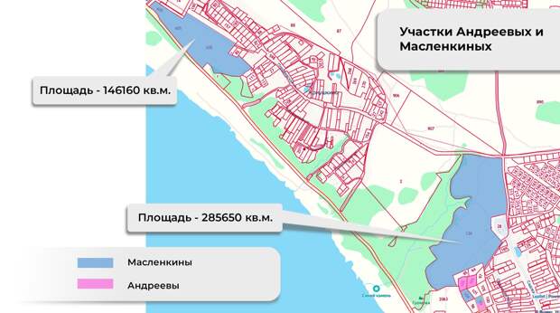 Согласно данным Росреестра, участками, из-за которых сейчас идет спор в Переславском районе, владеют или когда-либо владели Нина Ивановна, Анна Николаевна и Александр Алексеевич Андреевы. Участки возле Криушкино Андреевы подарили Масленкиным. А еще одним Нина Андреева владеет вместе с Натальей Масленкиной.