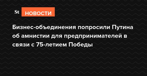 Бизнес-объединения и омбудсмен Борис Титов попросили президента России Владимира Путина остановить производство по нетяжким предпринимательским делам, а также освободить по УДО осужденных за экономические преступления в связи с 75-летием Победы в Великой Отечественной войне.