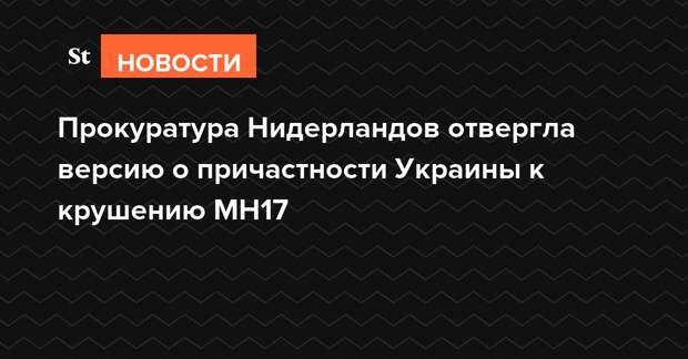 Прокуратура Нидерландов не нашла подтверждения версии, согласно которой самолет MH17 авиакомпании «Малайзийские авиалинии» был сбит на территории Донбасса в 2014 году ракетно-зенитным комплексом «Бук» Украины.
