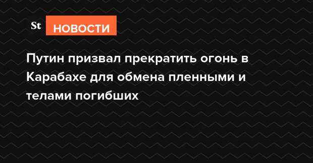 «После серии телефонных переговоров с президентом Азербайджанской Республики Ильхамом Алиевым и премьер-министром Республики Армения Николом Пашиняном президент России обращается с призывом прекратить боевые действия, ведущиеся в зоне нагорнокарабахского конфликта, по гуманитарным соображениям с целью обмена телами погибших и пленными», — сообщается на сайте Кремля.