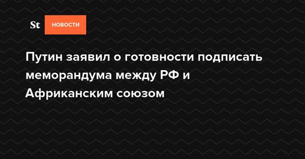 Президент России Владимир Путин сообщил о готовности РФ подписать с Африканским союзом меморандум об основах взаимоотношений. Об этом российский лидер заявил в начале рабочего завтрака с участием глав региональных организаций Африки.