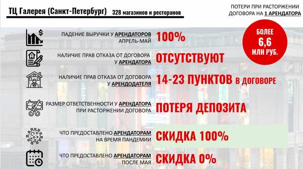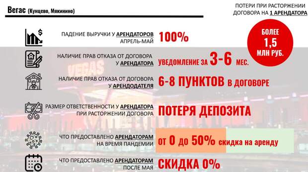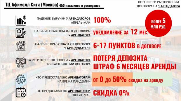 Слабые попытки поиска компромисса и понимания специфики бизнеса своего партнера привели к падению поступлений от аренды от 50 до 80%.