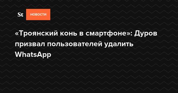 Создатель соцсети «Вконтакте» и мессенджера Telegram Павел Дуров призвал пользователей смартфонов отказаться от использования WhatsApp из-за уязвимостей для хакеров, присутствующих в приложении. Он подчеркнул, что это не первый раз, когда в мессенджере обнаруживают дыры в защите.