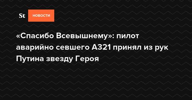 Президент Владимир Путин наградил звездами Героев России пилотов аварийно севшего в Подмосковье лайнера A321 — командира воздушного судна Дамира Юсупова и второго пилота Георгия Мурзина.