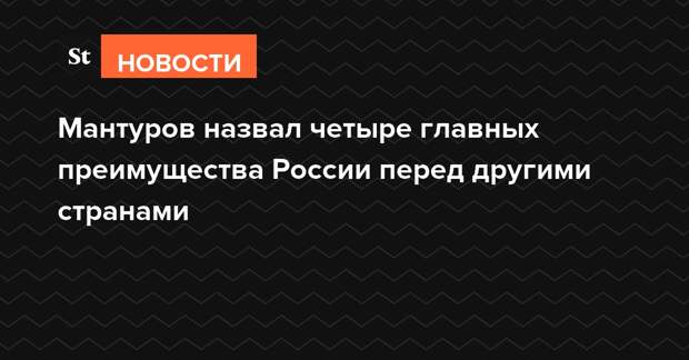 Россия обладает четырьмя преимуществами перед другими странами — это сила духа, кадры, наука и природные ресурсы, заявил министр промышленности РФ Денис Мантуров. По его мнению, все это позволяет стране реализовывать многие проекты, которые другим государствам не под силу.