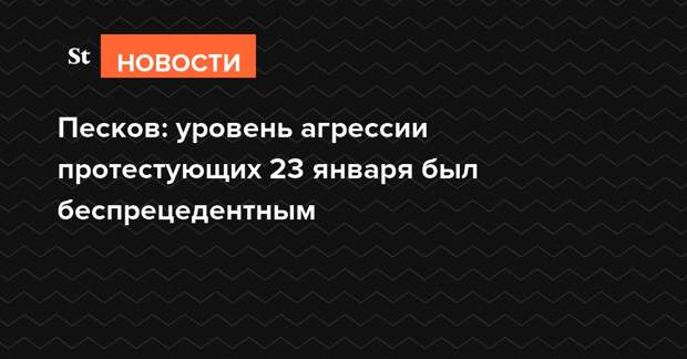На несанкционированных митингах 23 января протестующие вели себя крайне агрессивно, заявил пресс-секретарь президента РФ Дмитрий Песков. По его мнению, столкновения между митингующими и силовиками были вызваны насилием со стороны участников акций.
