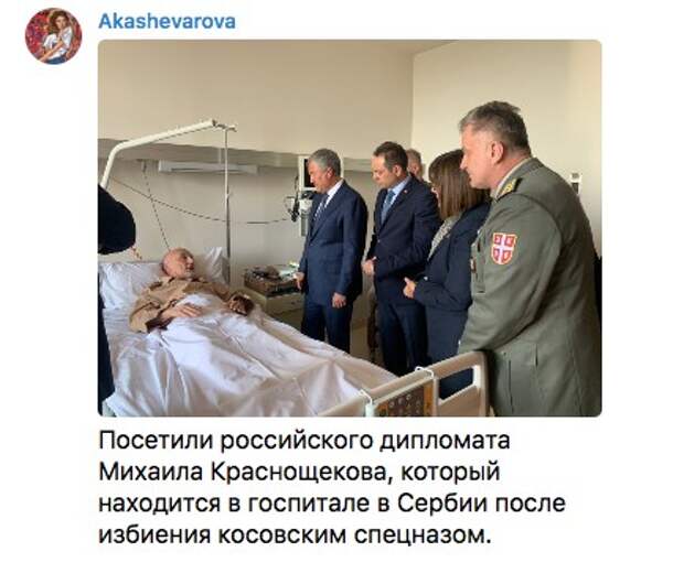 Председатель Госдумы Вячеслав Володин посетил в сербском госпитале члена миссии ООН в Сербии Михаила Краснощекова, который был задержан правоохранителями полупризнанного Косова в конце мая в результате спецоперации.