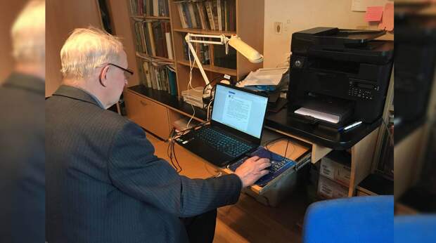 Пока Александр Иванович включает старенький стационарный компьютер, я оглядываюсь по сторонам. Его рабочий стол утопает в бумагах, подоконник — в цветах. Слева от нас книжный стеллаж, от пола до потолка заставленный учебной литературой.