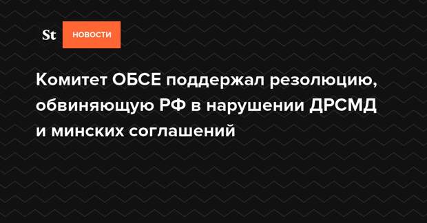 Комитет по политическим вопросам и безопасности Парламентской ассамблеи Организация по безопасности и сотрудничеству в Европе (ПА ОБСЕ) на заседании 6 июля поддержал резолюцию, призывающую прекратить военные действия на востоке Украины, а также содержащую тезисы о якобы невыполнении Россией минских соглашений и нарушении Москвой Договора о ликвидации ракет средней и меньшей дальности (ДРСМД).