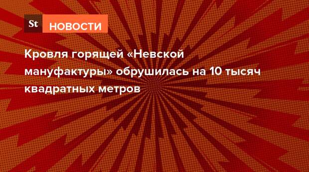 Обрушение кровли на фабрике «Невская мануфактура» в Санкт-Петербурге в результате мощного пожара, составило 10 тысяч квадратных метров.