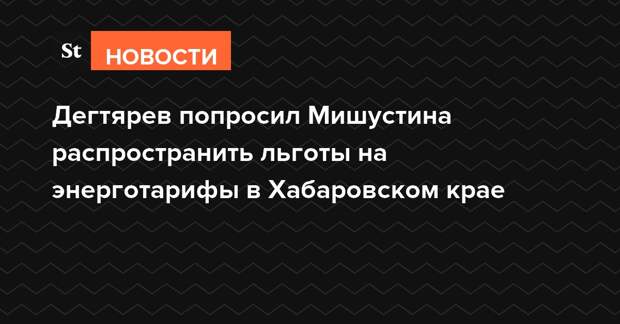 Мишустин, в свою очередь, поручил начать работу по проекту реконструкции дороги Ванино - Советская Гавань в регионе в 2021 году.«Вы 14 августа в Петропавловске-Камчатском давали поручения Минэнерго (...) о сниженных тарифах на электроэнергию [на Дальнем Востоке] до 2028 года. Просьба — часть районов северных включить в этот законопроект, дабы поддержать малый бизнес», — попросил Дегтярев у Мишустина, цитата по «Интерфаксу». Шесть районов Хабаровского края технологически не связаны с единой энергосистемой. Электроэнергия там генерируется на дизельных станциях и на Николаевской теплоэлектроцентрали, пояснил врио главы региона.