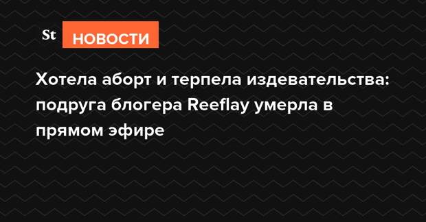 Блогер Стас Решетников, известный как Reeflay, вел прямую трансляцию, как его девушка умирает. Стример не выключил камеру, даже когда прибывшие медики констатировали смерть подруги. По предварительной информации, до этого Reeflay выгнал девушку на мороз, «чтобы не воняла» и спустя несколько часов затащил в комнату уже холодное тело подруги.